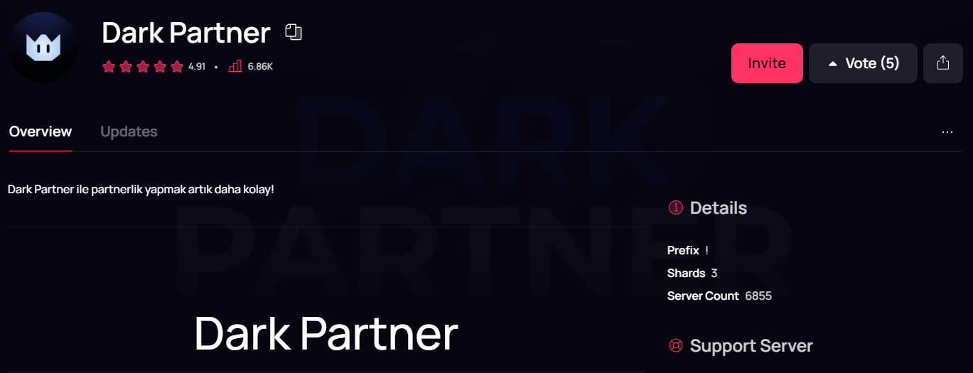 Dark Partner utilizes Pixelnest's affordable, ultra-fast RAM toserve to over 1,000 Discord Server